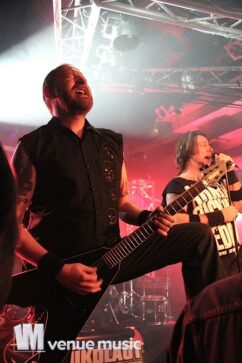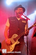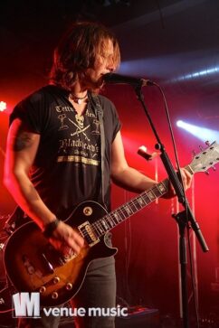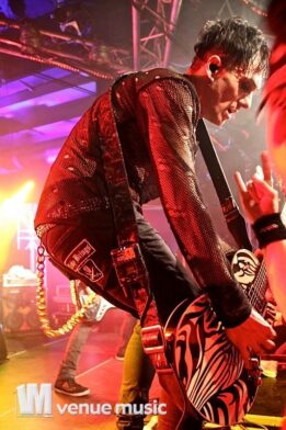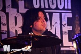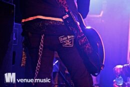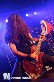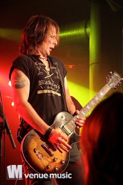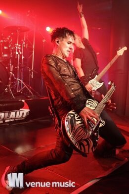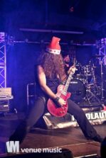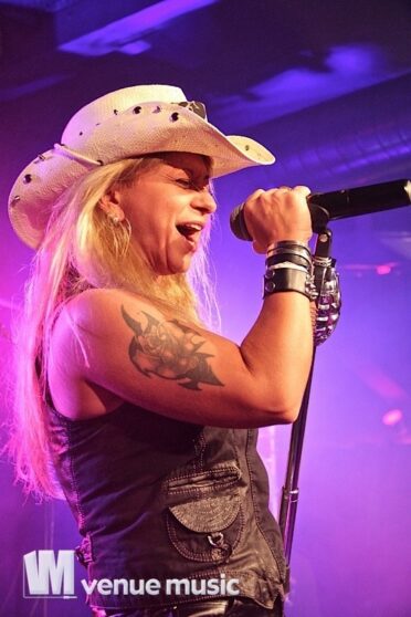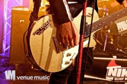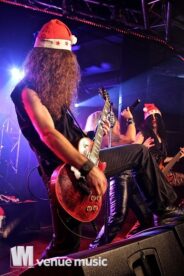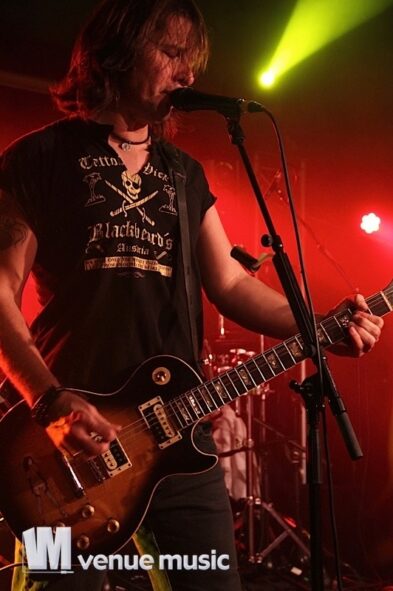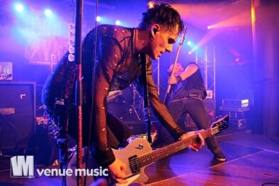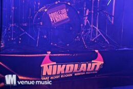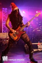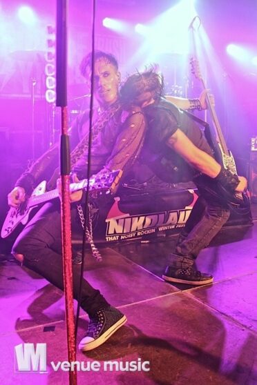 NIKOLAUT Pressepass Andrea Jaeckel-DobschatAm 06.12.2014 war es so weit: Das NIKOLAUT – Winterfestival fand in Mülheim an der Ruhr statt – in einem schnuckeligen Gothic-Club namens „The Inner Circle“ – und venue music war dabei. Das Ambiente war unglaublich genial. Was man als vergessene Halloween-Deko hätte betiteln können, war wohl gewollte Standard-Club-Gruft-Deko. Statt Weihnachtsbäumen und dem ganzen Kram, hatte sich der Club für Spinnweben entschieden. Aber hier ging es ja eh um Rock’n’Roll & Metal und deswegen haben die Nikolausmützen, Banner & Festival-Shirts vollkommen ausgereicht. Wir (Carsten und ich) wurden jedenfalls herzlich begrüßt, Kaffee war auch da und wir bekamen den berühmten Pressepass in die Hand gedrückt. Statt den obligatorischen drei Songs im Fotopit durfte ich den ganzen Abend lang fotografieren wie ich lustig bin. Ohne Trittleiter war es für mich allerdings stellenweise etwas schwierig, immer die perfekte Position zu finden (The New Black bekamen aus diesem Grund leider wenige Fotos ab), aber ich habe mein Bestes gegeben 🙂 Die erste Band „Nerd School“ kannte ich persönlich nicht, die beiden Jungs waren aber der perfekte Opener für das ausverkaufte Festival, bei dem es übrigens alles gab, was das Herz begehrte – und das noch zu tollen Preisen. Inklusive leckerem Essen wie Hamburgern oder Pizza. Mit der zweiten Band „Souldrinker“ konnte ich dann schon ein wenig mehr anfangen, denn die Sängerin Iris Boanta sang in der AC/DC Tribute Band einer Freundin. Ihre Fanbase hatten die sympathischen Metaller natürlich dabei und die gaben im Moshpit alles und rissen die anderen Gäste spielerisch mit. „The New Black“ hatte ich des öfteren schon einmal gesehen, da sie 2010 als Support-Band von J.B.O. dabei waren – man sieht sich hier und da mal 😉 Auch die Jungs hatten ihre Fans dabei und spätestens jetzt war der Club so weit vorgeheizt, dass man getrost seine Sweatjacke ausziehen konnte. Der Sound war übrigens durchgehend klasse – bis in die Klos. Ich habe mir sagen lassen, vom Männerklo aus hätte man direkt auf die Bühne sehen können – praktisch – bei uns Mädels ging das nicht. Ich gebe zu, ich hatte mich ja den ganzen Abend schon auf „Double Crush Syndrome“ gefreut, denn nachdem mein Rock’n’Roll Bro Slick Prolidol die Bass-Parts übernahm, habe ich mich mit der Band etwas näher beschäftigt. Mit dabei war Front-Rampensau Andy Brings, der in Mülheim praktisch sein Heimspiel hatte. Für die Show hatte ich mich natürlich gleich in die erste Reihe gequetscht – samt Kamera. Deswegen gibt es da auch die meisten Fotos – man möge es mir verzeihen 😉 Die „Nitrogods“ oder auch die „Deutschen Motörhead“ waren die letzte Band an dem Abend und wurden von allen gefeiert. Besser hätte die Stimmung nicht sein können Leider mussten wir wegen dem letzten Zug nach den ersten Songs schon den Club verlassen, aber wir sind immer noch hellauf begeistert. Tolles Line-Up, toller Sound, spitzen Preis-Leistungsverhältnis und insgesamt ein schönes Festival. Wir sind nächstes Jahr hoffentlich wieder mit dabei – vielen Dank für die Einladung 🙂