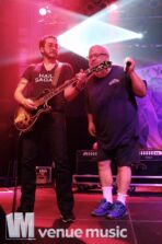 Es ist ja durchaus bekannt, dass ich ein wahnsinniger Fan der Band Tenacious D bin. Leider hatte ich bisher noch keine Gelegenheit, Jack Black und Kyle Gass (KG) live zu sehen. Umso glücklicher war ich, als bei mir die Nachricht ins Postfach flatterte, dass ich die Kyle Gass Band fotografieren darf. Ich kannte zwar die Songs, wusste aber nicht so genau, was ich bei dem Konzert erwartet. Gut, ich hatte auch nicht geahnt, dass sich die Band an dem Abend wegen den Schweizer Grenzkontrollen über eine Stunde verspätete. Die Vorhalle der Garage füllte sich und war natürlich am Ende vollgestopft mit Fans, die ja leider noch nicht in die Halle durften – es war ja noch nichts aufgebaut. Endlich angekommen schafften es Crew und Band in 30 Minuten die Backline und das Bühnenbild aufzubauen und den Soundcheck zu machen. Wow! Meinen Respekt habt ihr!